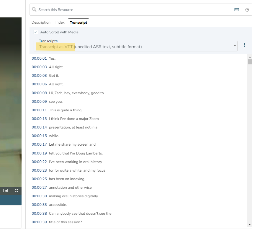 This 16,400-word ASR tran is organized in short segments with timecodes every 1-5 seconds, making it easy to search specific terms within the recording and begin playing the media in the immediate vicinity. VTT format originally evolved for closed captioning, for timing words on a screen. Explore VTT tran here.
